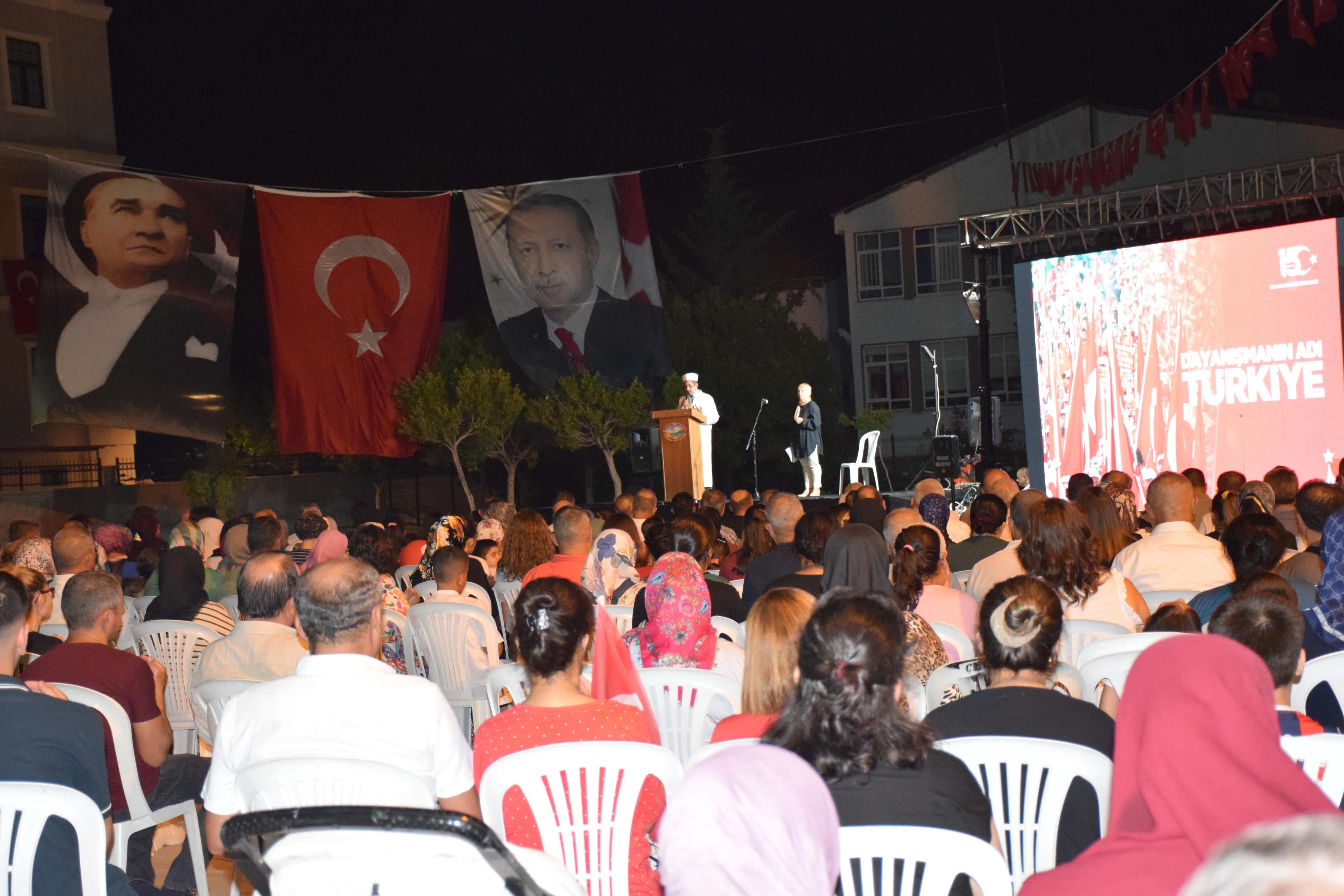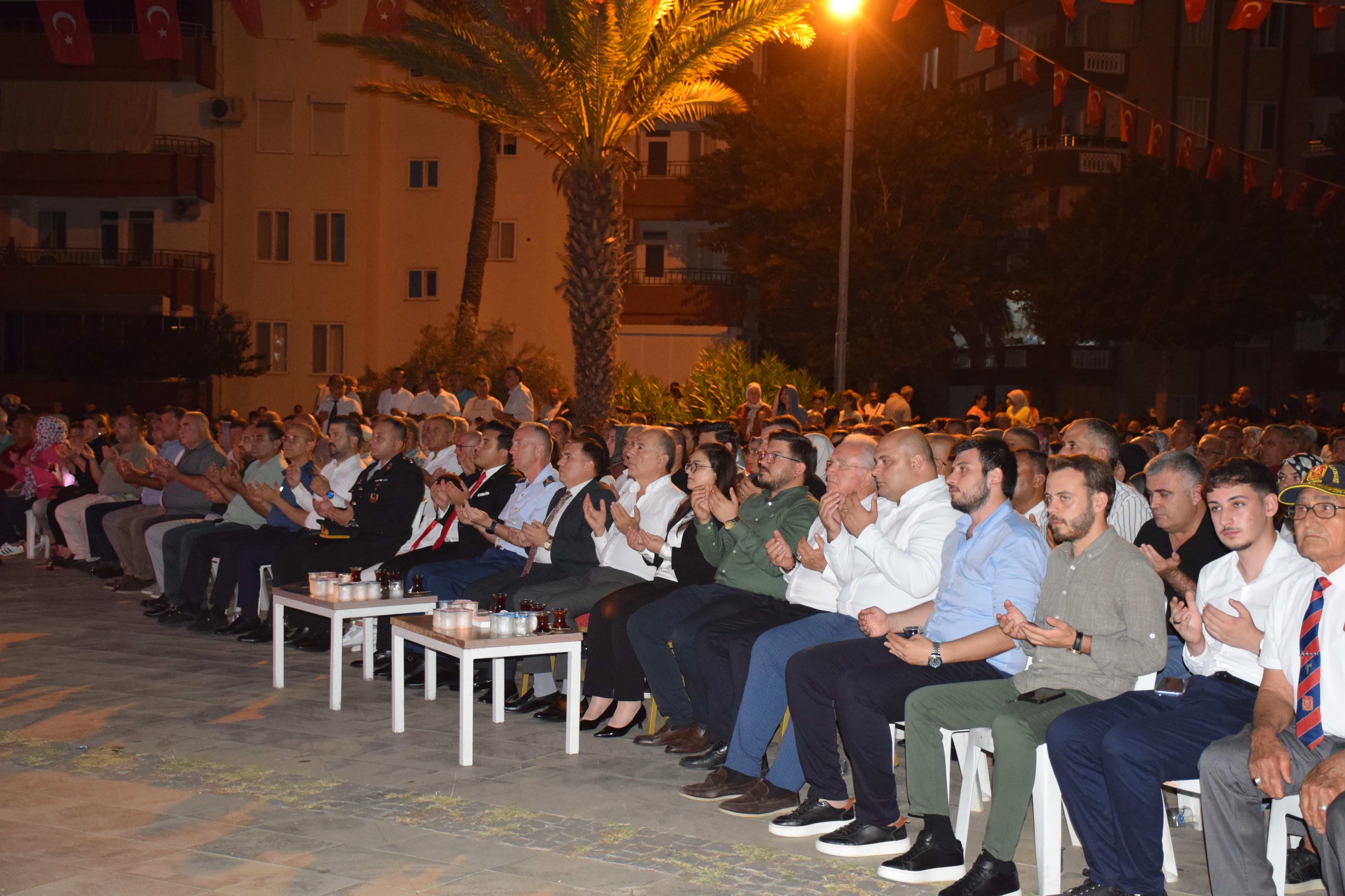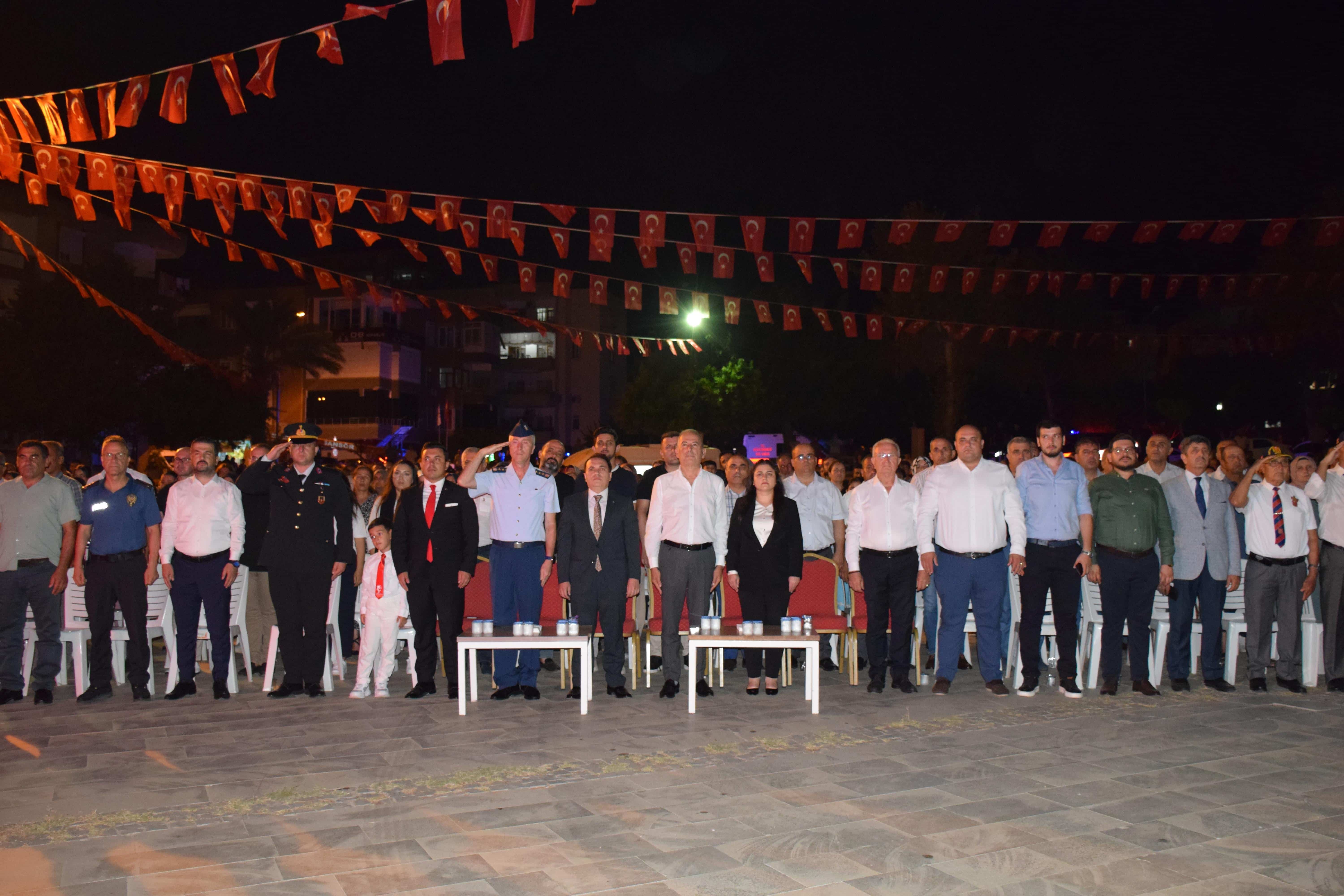 15 Temmuz Anma Programı Yeni Cumhuriyet Meydanı'nda Gerçekleştirildi 15 Temmuz Demokrasi ve Millî Birlik Günü etkinlikleri, saat 21.00'de Yeni Cumhuriyet Meydanı'nda düzenlenen programla devam etti. Saygı duruşu ve İstiklal Marşı'nın ardından Anamur Kaymakamı Kemal Duru, günün anlam ve önemine dair konuşmasında, "15 Temmuz, milletimizin demokrasisine, iradesine ve vatanına sahip çıktığı destansı bir gecedir. Aziz şehitlerimizi rahmetle, gazilerimizi minnetle anıyoruz," ifadelerini kullandı. Programda Kur'an-ı Kerim tilaveti, mevlit ve duaların ardından öğrenciler 15 Temmuz temalı şiirler okudu. Sinevizyon gösteriminde ise o geceye dair görüntüler ve şehitlerin anısına hazırlanan videolar izleyicilere duygusal anlar yaşattı. Gece, saat 00.13'te tüm camilerden okunan sela ile sona erdi. Programa ilçe protokolü, kurum amirleri, siyasi parti temsilcileri, sivil toplum kuruluşları ve çok sayıda vatandaş katıldı.
