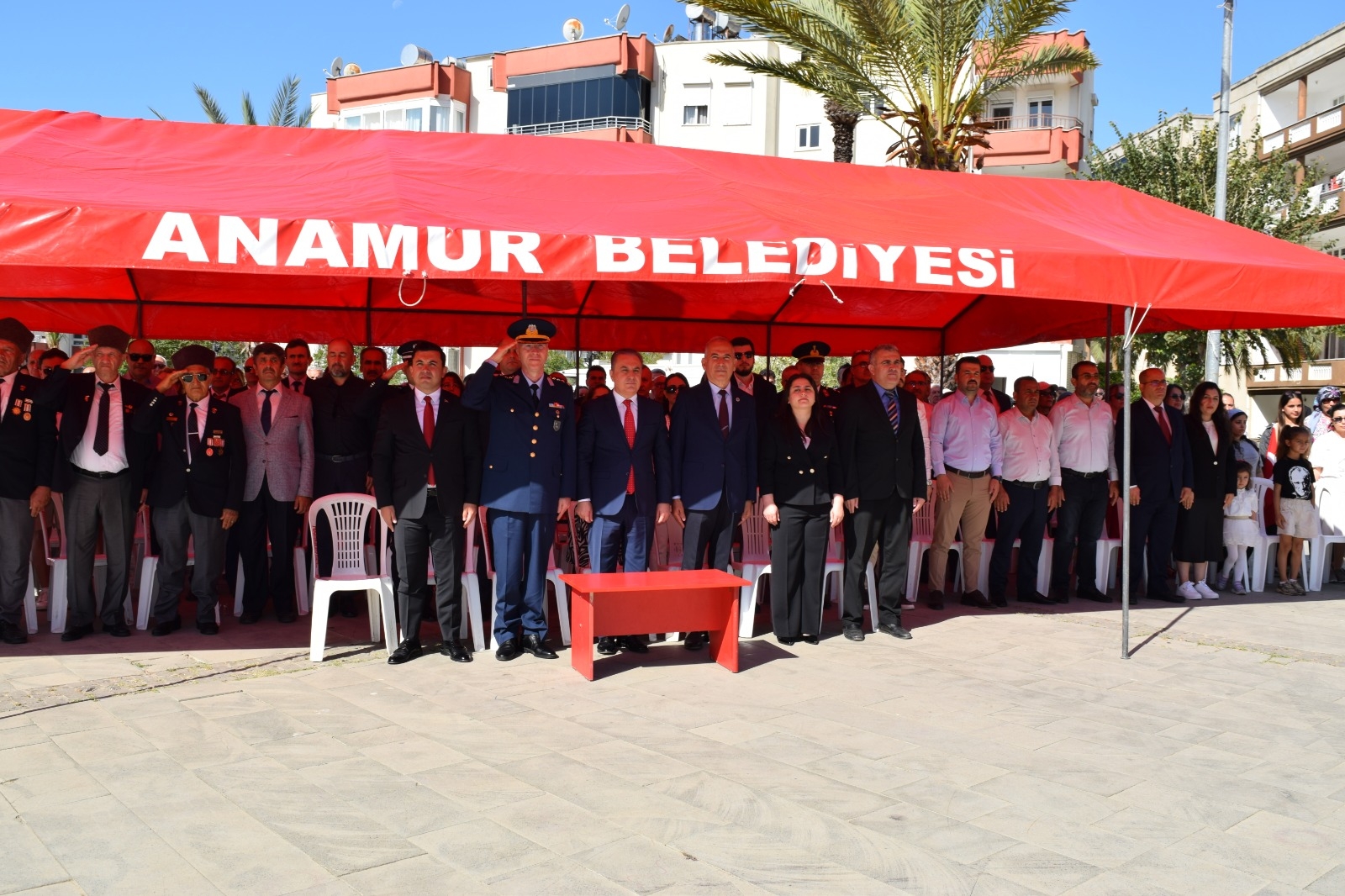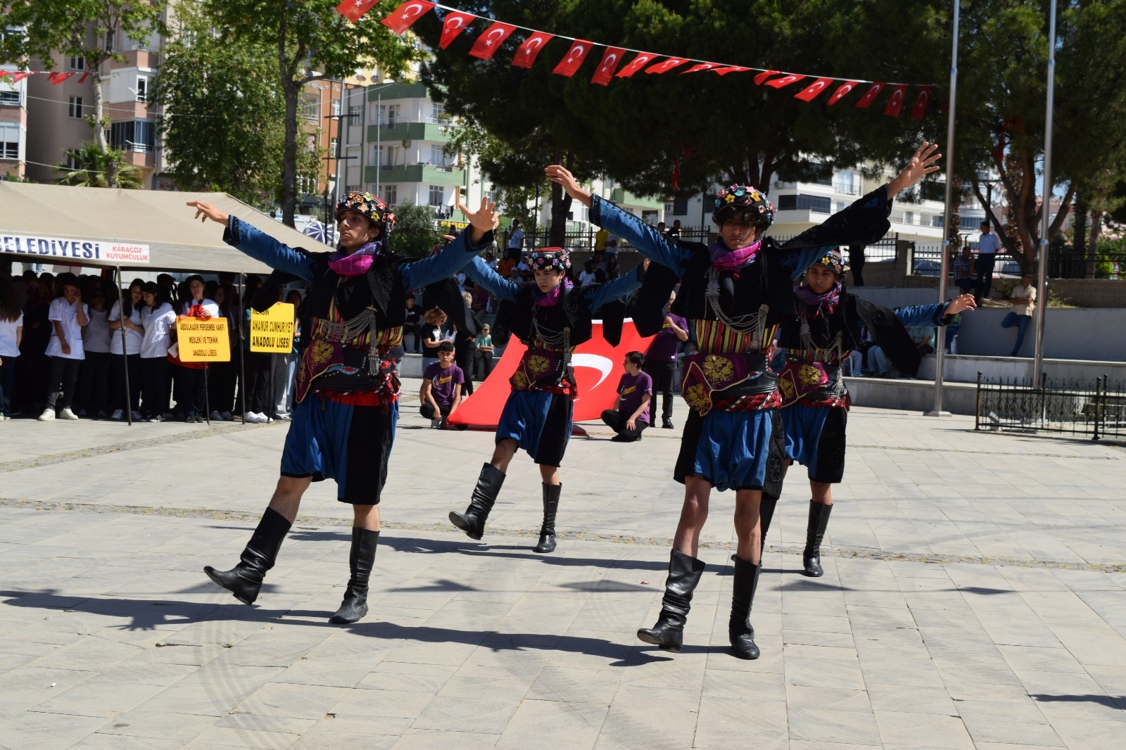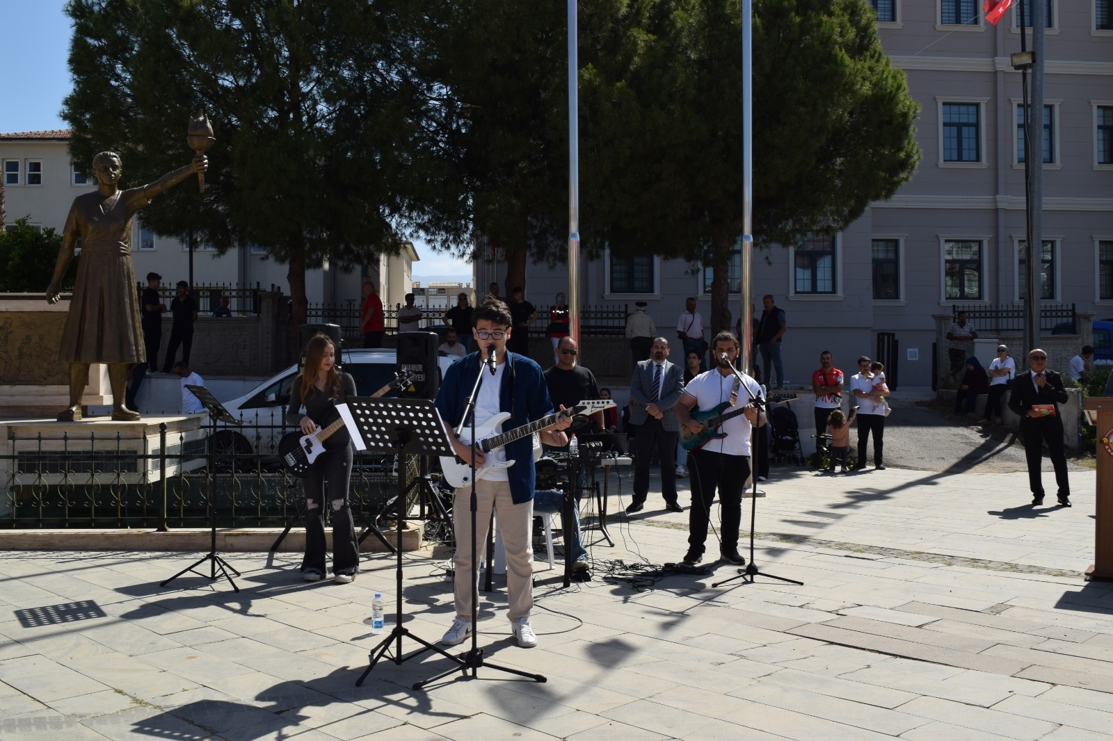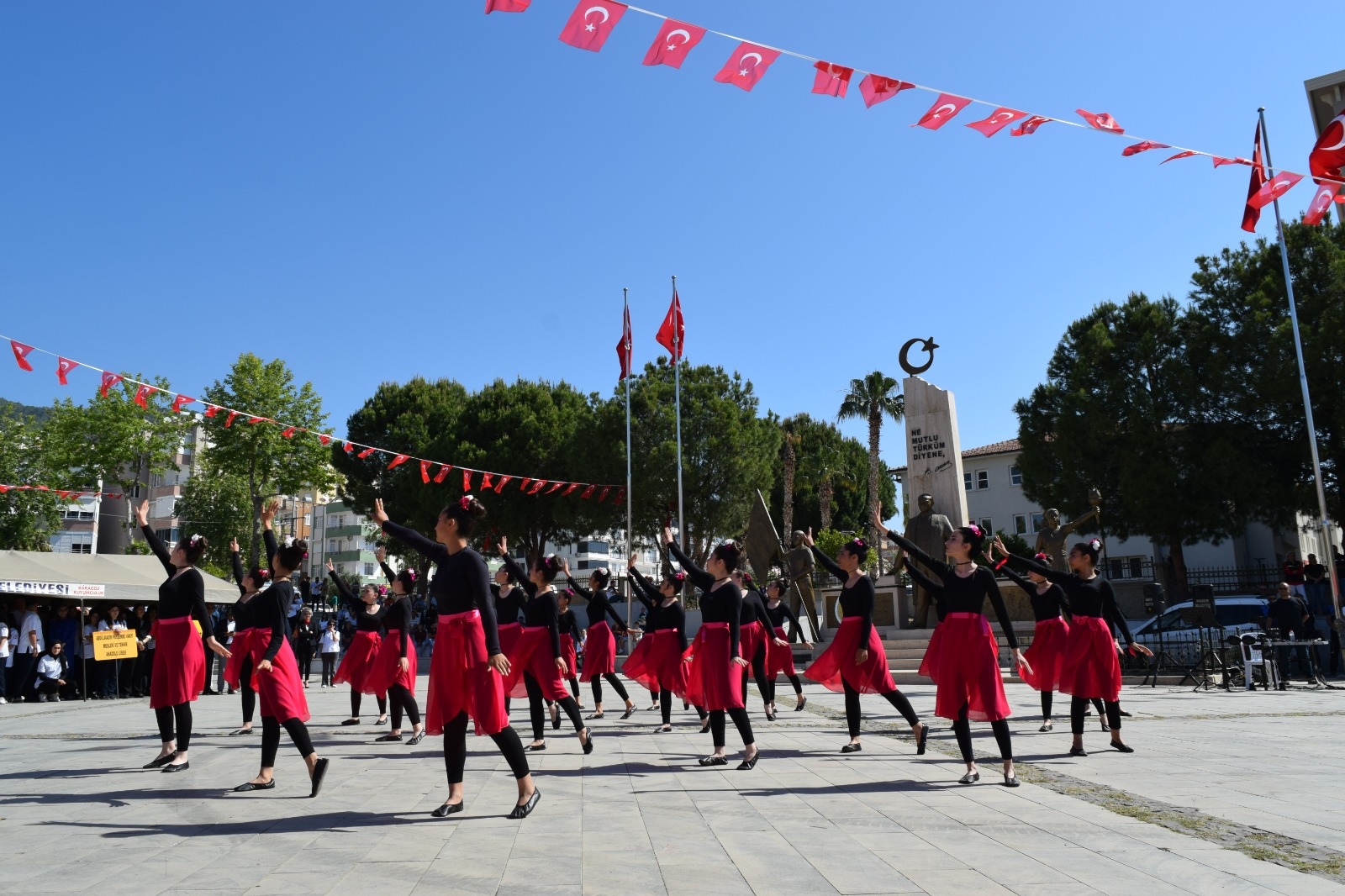 Cumhuriyet Meydanı'nda düzenlenen törene Kaymakam Bilal Bozdemir, protokol üyeleri, öğretmenler, öğrenciler ve vatandaşlarımız katılım sağladı. Programda öğrenciler tarafından hazırlanan birbirinden güzel gösteriler beğeni topladı.
